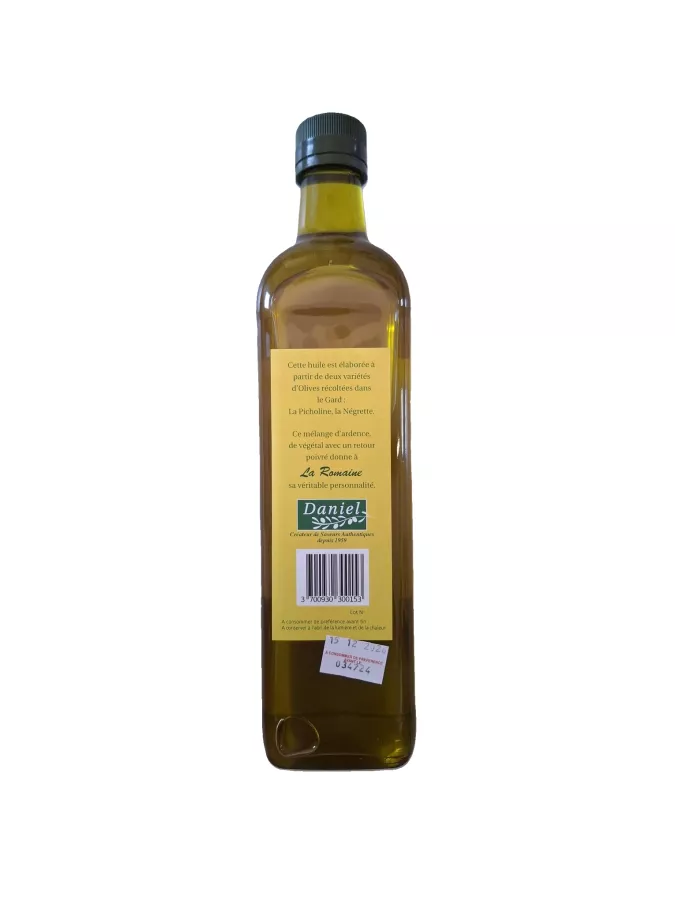 Notre huile d'olives vierge 'La Romaine' a été élaborée il y a une quinzaine d'année maintenant par Mr Perez Daniel. Assemblage de Picholine et de Negrette, cette huile d'olives est un parfait équilibre pour les amateurs de saveur local.